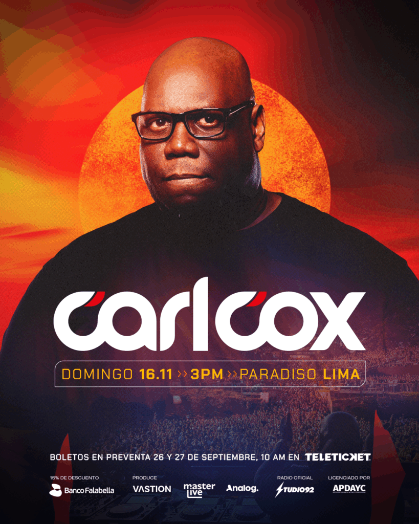 El ícono global de la música electrónica Carl Cox regresa a la capital para protagonizar el Carl Cox – Sunset Open Air, un espectáculo imperdible que se vivirá el domingo 16 de noviembre en Paradiso – Club Cultural Deportivo Lima (Chorrillos).